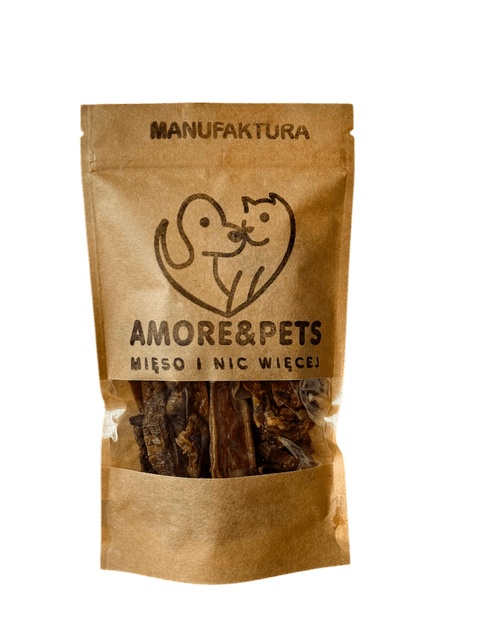 Odkryj naturalne gryzaki i suszone przekąski dla psów od Amore&Pets. 100% mięsa, bez konserwantów i gliceryny. Zdrowe smakołyki na co dzień – z miłości do psów.